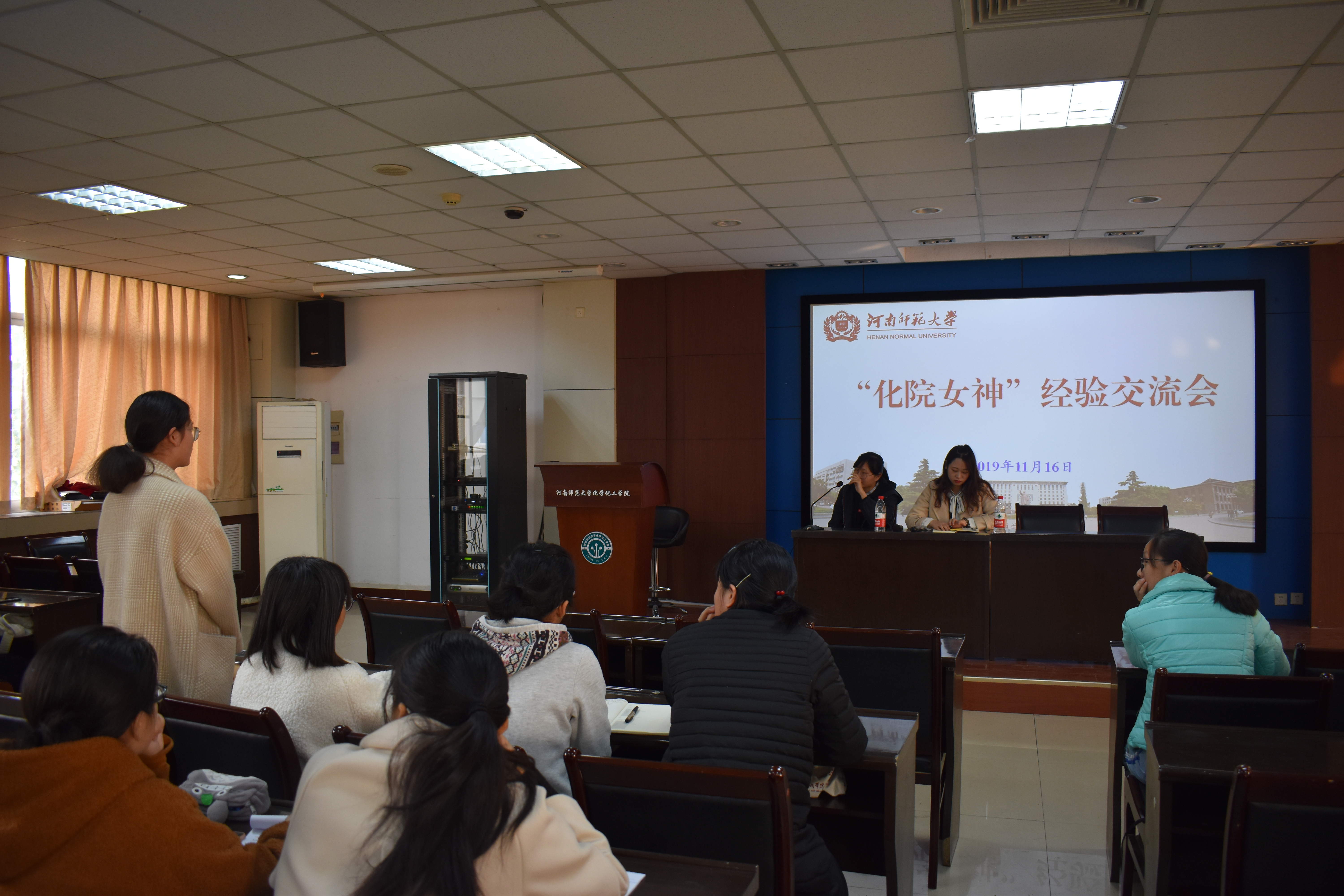 11月16日上午,化学化工学院在化学北楼五楼会议室举办“化院女神”经验交流会。会议由文艺女生部主办,2016级获得“化院女神”荣誉称号的两位同学出席,学院60余名学生参加本次交流会。本次交流会旨在让学生走近榜样,领略“化院女神”的风采,学习优秀经验。