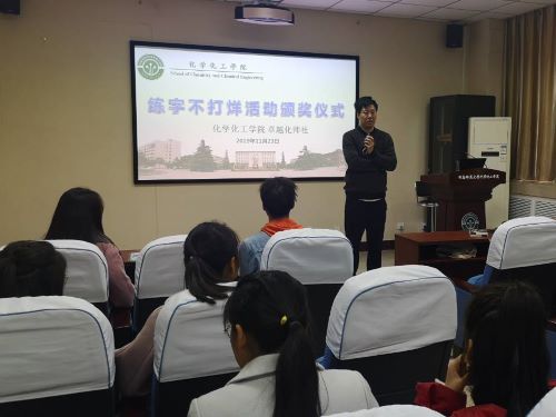11月23日中午,本次活动表彰仪式在化学北楼N113会议室举办,院团委副书记曹锟出席并为获奖选手颁奖。曹锟表示,本次活动的开展能够有效带动学生的练字习字意识,希望参与人员的练字历程不止于21天,而是把这一好习惯坚持下去并将书法这一基础技运用到实践中。同时,他建议今后多多开展此类培养教师技能的活动,切实提高师范生的教学技能。