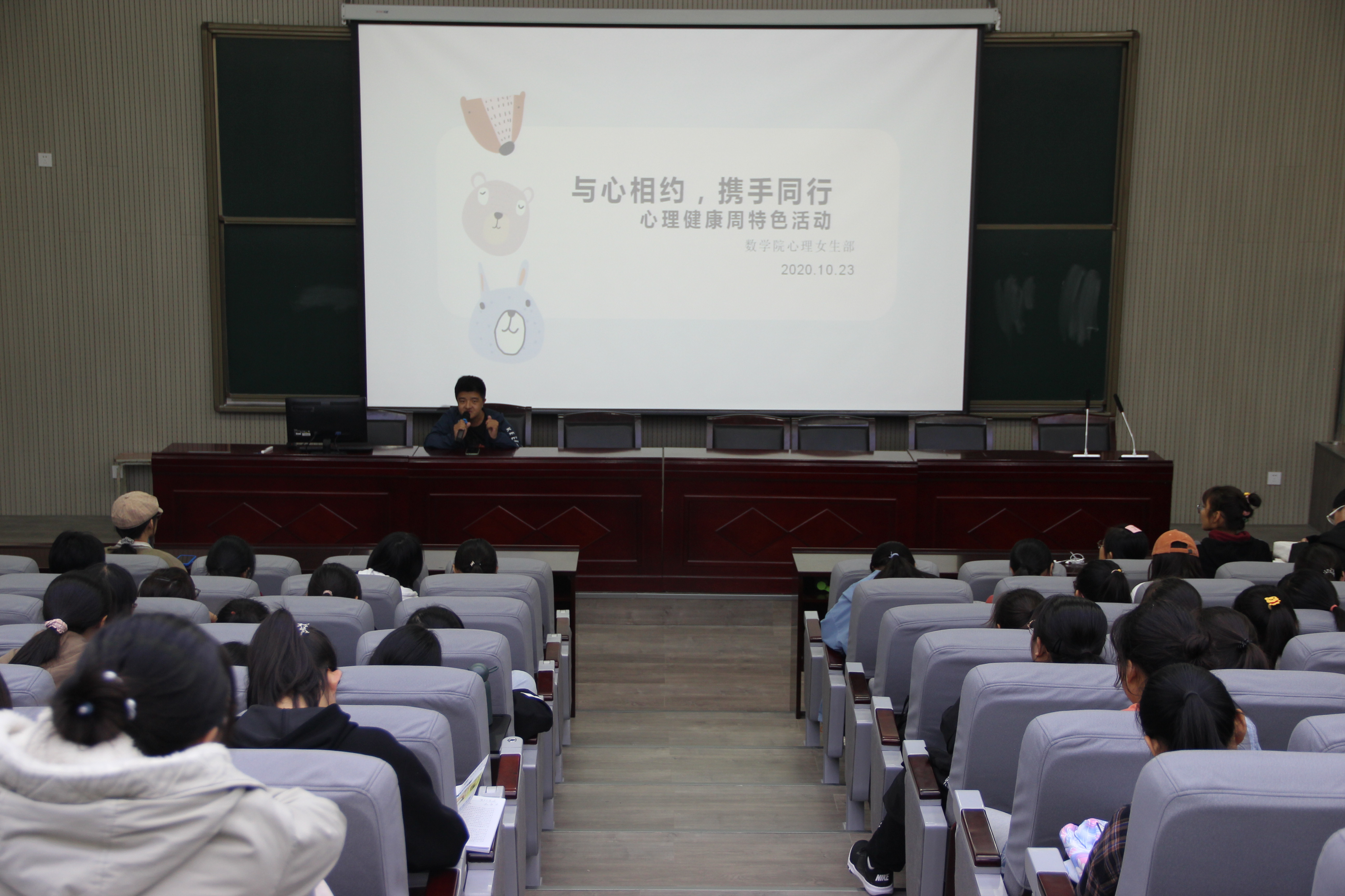 为促进新生以健康向上的心态适应大学生活,提高心理调节能力,培养过硬的心理素质。10月23日中午,数学与信息科学学院在院多功能报告厅开展心理健康周特色活动,2020级共120余名新生参与其中。