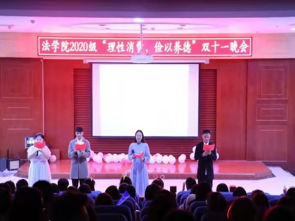为帮助同学们树立理性健康的消费观念,培养勤俭节约的美好品德,11月11日晚,法学院于模拟法庭举办2020级“理性消费,俭以养德”双十一晚会。法学院2020级专兼职辅导员和全体学生共同参与此次活动。