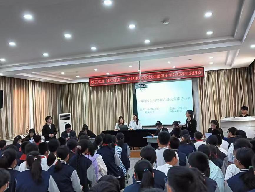 为培养大学生实践能力,丰富小学生校园文化生活,4月26日下午,政治与公共管理学院风华“政”茂辩论队面向河南师范大学附属小学六年级全体学生开展辩论表演赛活动。