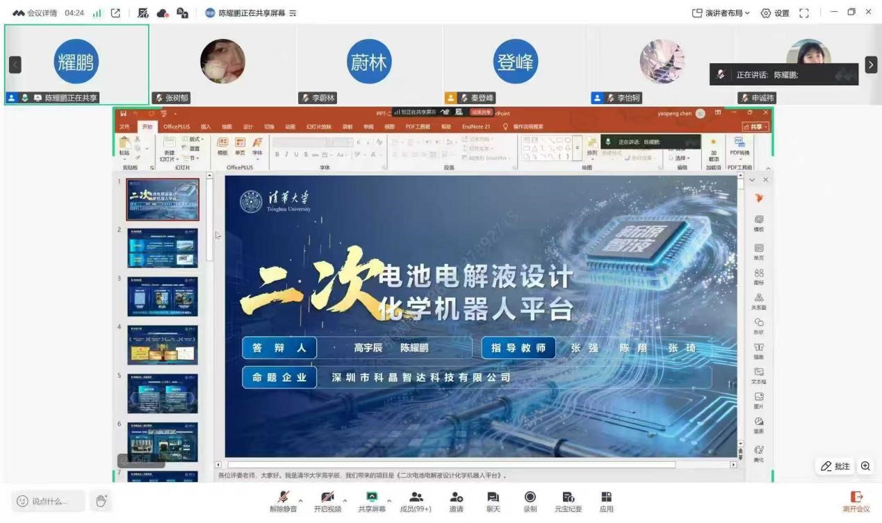 分享会伊始,主持人详细阐释了会议举办的核心目的,并隆重介绍了清华大学分享团队。随后,团队核心成员陈耀鹏、高彦斌、李卫林依次发言,分别围绕自身研究分工、项目核心内容与整体推进情况作简要介绍。在经验分享环节,团队负责人陈耀鹏博士结合自身从校赛、省赛到全国赛的完整参赛历程,系统梳理并提炼出三大关键备赛要点:其一,强调备赛周期的重要性,建议团队尽早启动筹备工作,预留充足时间打磨项目,为赛事进阶筑牢根基;其二,拆解材料准备核心技巧,结合不同赛事阶段特点,明确各类申报材料的撰写侧重点;其三,指明项目逻辑需深度贴合评审规则,重点突出政策支持、市场需求、痛点分析、企业命题契合度等核心模块,引导参赛者向产业需求导向转型。互动交流环节中,我校各备赛团队负责人踊跃提问,围绕团队人员组建、PPT制作优化、项目选题挖掘、跨学院组队渠道等实际备赛难题,与清华大学分享团队展开深入探讨。分享团队结合自身实战经历,逐一给出针对性、可落地的解决方案,为我校团队破解备赛瓶颈提供了切实参考。