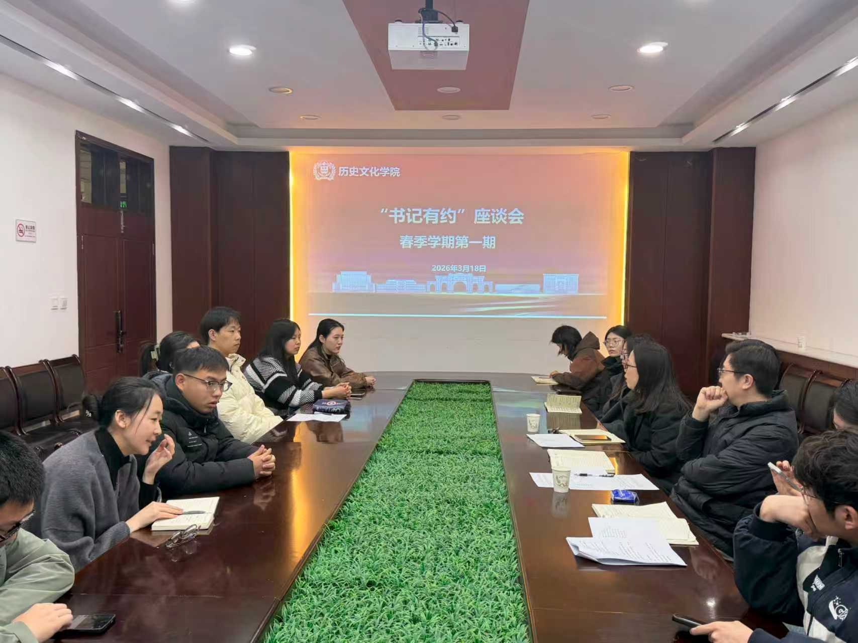历史文化学院以扎实开展树立和践行正确政绩观学习教育为契机,进一步深化党建引领学院高效能治理,做大做强“书记有约”学生工作品牌,将每月举办1期“书记有约”座谈会,争取每学期达到学院各个年级全覆盖,以便于更为及时、精准地掌握学生急难愁盼,把握学生思想动态,采取有效措施,推动学院高质量发展和高效能治理。