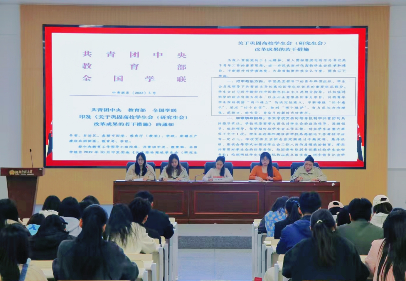 为深入贯彻落实党的二十届四中全会部署要求,深入学习习近平总书记关于树立和践行正确政绩观的重要讲话和重要指示精神,持续推进学生组织作风建设走深走实、常态长效,坚决防范形式主义、官僚主义问题,切实强化学生骨干纪律观念与责任担当,3月31日,河南师范大学学生会在树蕙堂召开2025—2026学年第二学期作风警示教育大会。校团委组织部部长孙琳娜出席会议,各院(部)学生会负责人、校学生会全体成员参加会议。