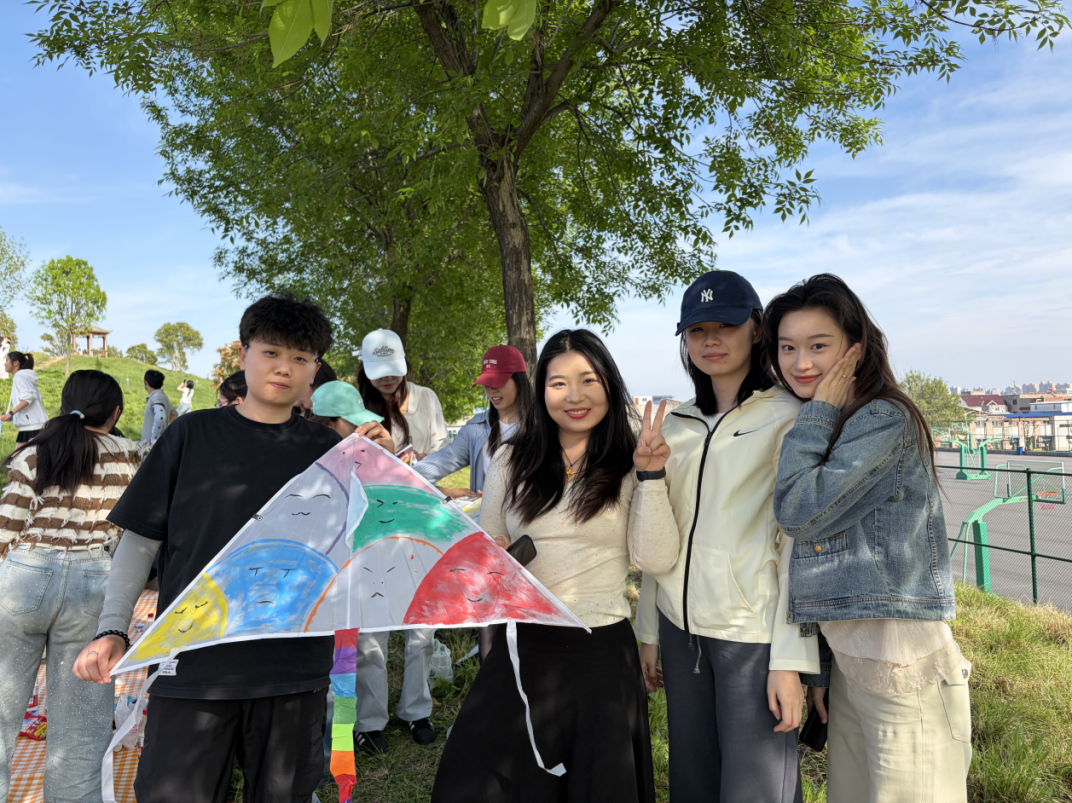 自由放飞环节将活动推向高潮。各小组分批奔赴旷野,迎着春风奋力奔跑,将亲手绘制的风筝送上蓝天。尽管春风时急时缓,同学们的热情却丝毫未减。一只只承载着创意与梦想的风筝迎风起舞,草坪上满是同学们奔跑的身影与欢呼声。