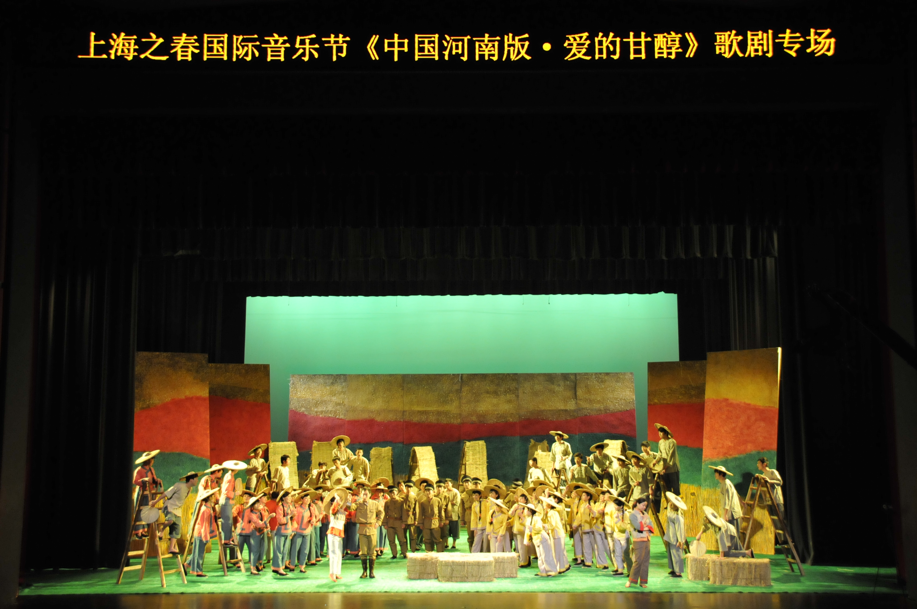 晚会在优美的《爱的甘醇》乐曲声中缓缓拉开帷幕。该歌剧将十九世纪意大利农村的故事背景嫁接到我省特定的文化历史背景中进行表现,在不更改原故事内容的基础上,使这部优秀的歌剧具有更多的中国河南味道,歌剧中一些唱段、念白也将改用河南方言进行表演。演员们精彩的表演和乐团优美的伴奏博得了现场观众热烈的掌声。