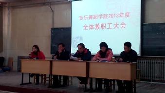 20141月14日下午,音乐舞蹈学院2013年度全体教职工大会在院501召开。会议由音乐舞蹈学院行政副院长、工会主席林安春主持。