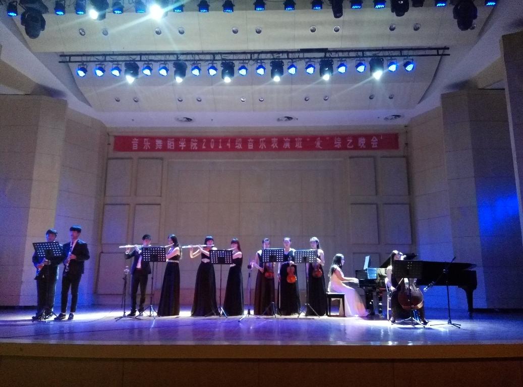 2015年6月13日晚19点30分,音乐舞蹈学院2014级音乐表演班的同学们在音乐厅上演了一场精彩绝伦的班级晚会,莅临本场晚会的有音乐舞蹈学院2014级辅导员樊晓腾、2014级音乐表演班数名同学家长与各学院的同学们。