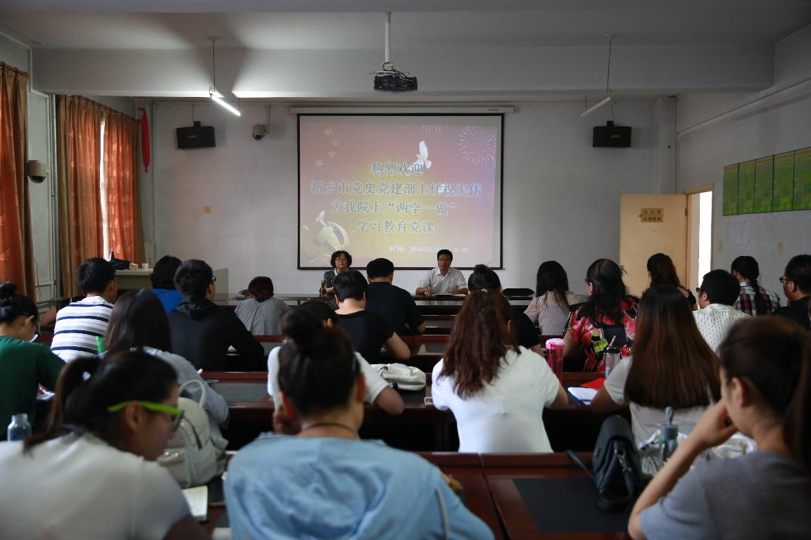 为进一步推进“两学一做”学习教育工作深入开展,6月24日上午8:30,在学院二楼会议室召开“两学一做”学习教育党课,党课由学院党委书记杨宝刚主持,特邀请新乡市委党校党史党建教研部主任、新乡市党史学会理事、河南省十八大专题宣讲专家团成员祝宪伟教授为我院全体党员上上了《中国共产党九十五年奋斗历程》的党课。