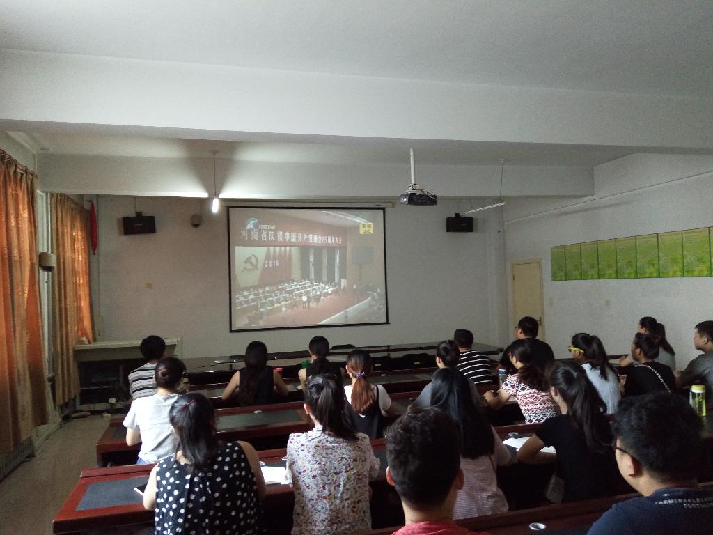 2016年6月29日上午9:00,在学院二楼会议室,我院教工与学生党员共同观看了河南省庆祝中国共产党成立95周年大会现场直播。