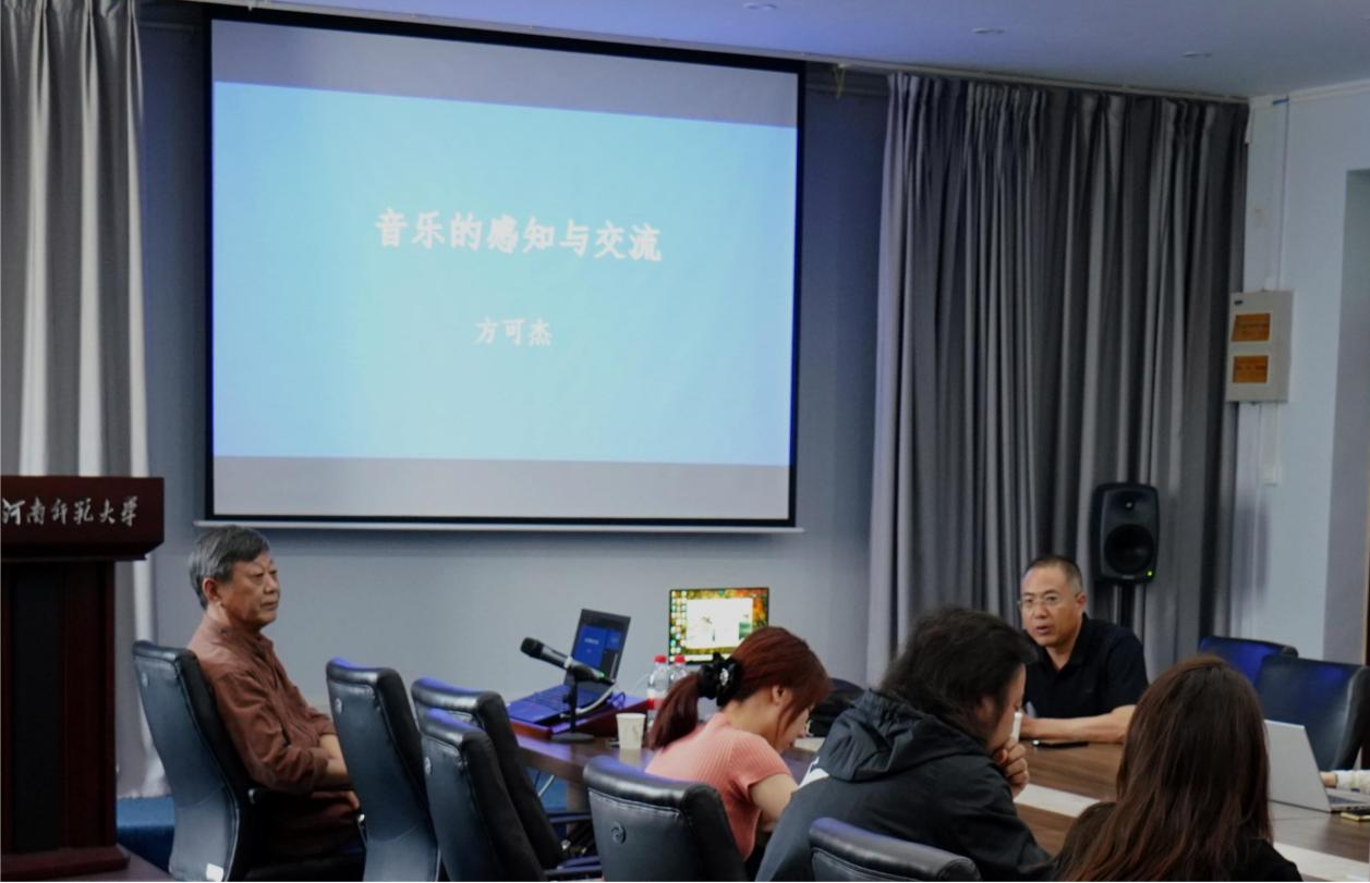 方可杰以八千年前的骨笛和当今民间音乐的活态生存为导入,指出中国民族音乐源远流长。他立足于河南传统音乐文化的教学实践,反思当代高校音乐教学中存在的问题,强调音乐创作者需承担历史责任,要尽心竭力做好文化传承,让中国传统音乐文化在传承与发展的驱下焕发新的活力。校特聘教授赵塔里木从中国传统音乐的“根”在哪里、“脉”是怎么回事、“根”和“脉”传承下去需要“魂”三个方面作总结,指出我院师生应学习方可杰将音乐与人民相联系的创作方式,用音乐讲好中国故事。