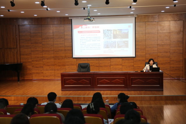 王海芹主要围绕抗洪抢险、志愿服务、基层治理、疫情防控等典型事迹,用身边人、身边事讲述了作为一名共产党人“扛稳责任、心系群众、努力工作”的奋斗初心,并从“矢志不渝的理想信念、明辨是非的思想定力、安心定志的充盈底气、一往无前的奋斗精神、一心为民的赤子情怀“五个方面解读中国共产党人的信仰根基,教育引导广大学生做一名“三观”正确、格局远大、脚踏实地、永不言败、心怀感恩的人,坚定扛起时代赋予的使命和责任,用奋斗书写青春。