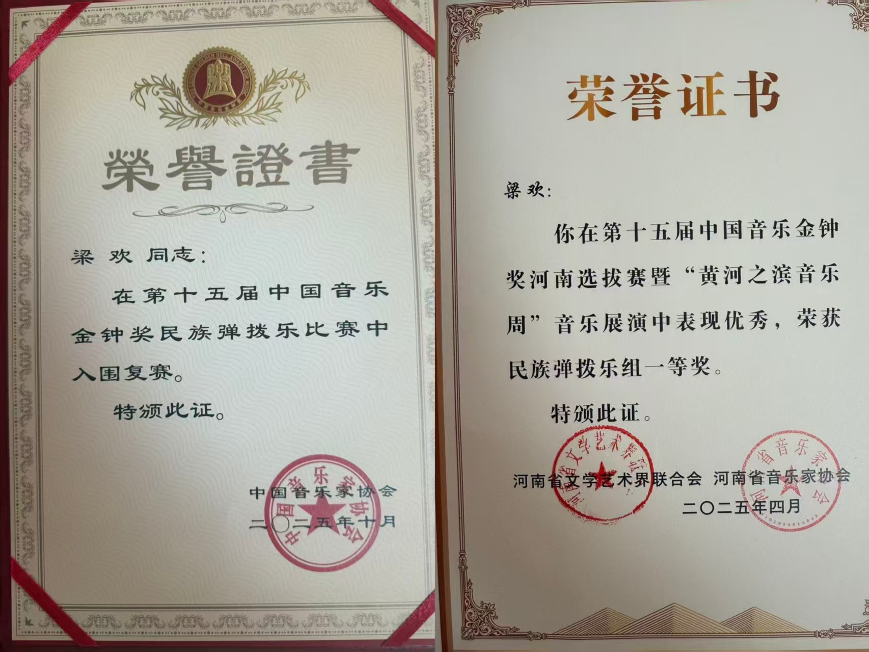 近日,在备受瞩目的第十五届中国音乐金钟奖选拔中,我院教师屡创佳绩,展现出雄厚的专业实力与教学水平。学院教师梁欢凭借卓越表现,以河南省唯一晋级的琵琶专业选手身份,晋级全国选拔赛,并在全国189名参赛者中脱颖而出,成功闯入全国复赛名单,教师郝静、马瑛君、孙嘉琦、张益铭亦在省级选拔中脱颖而出,荣获省级奖项。