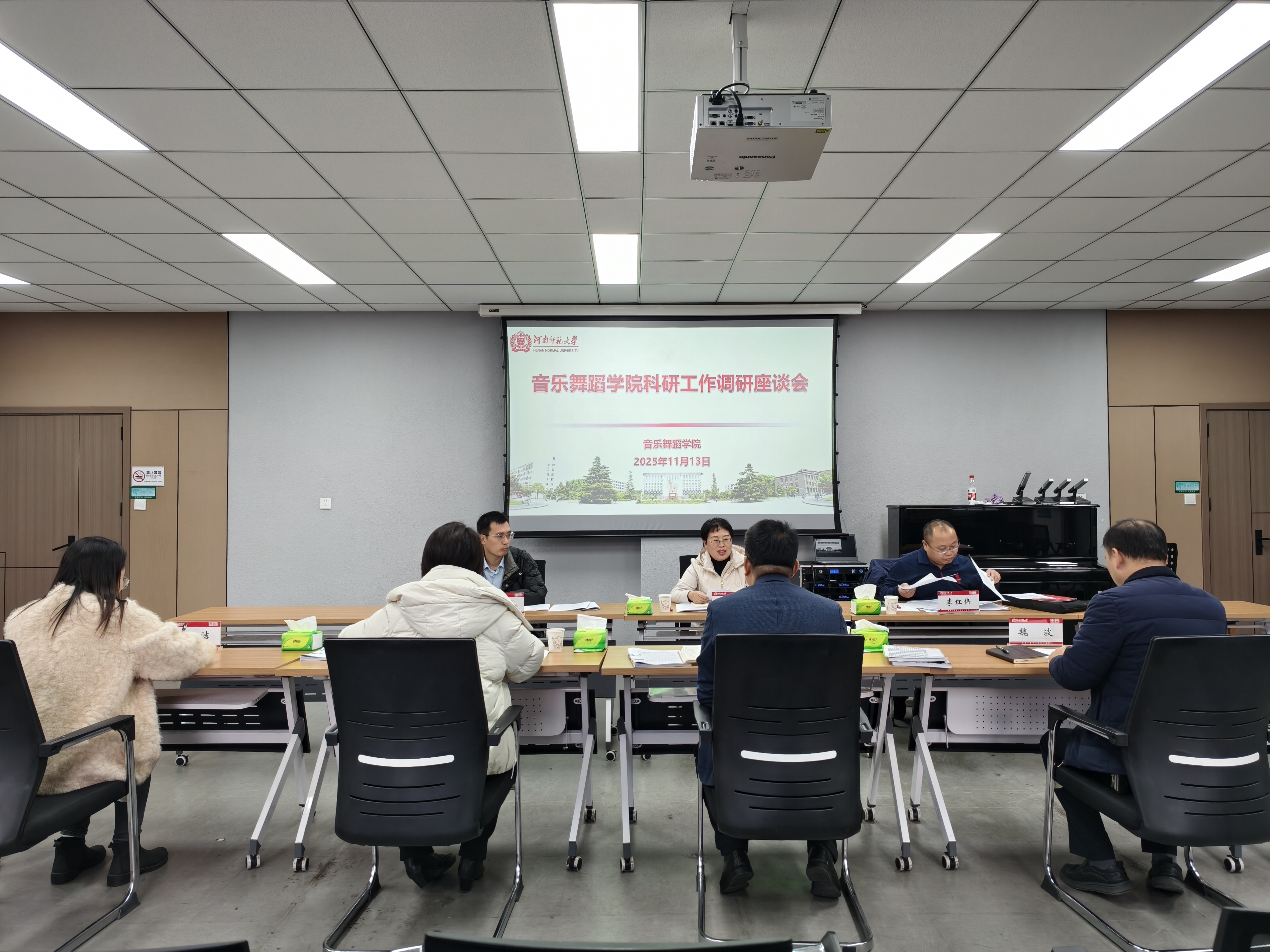 罗强首先代表学院对社科处一行的到来表示热烈欢迎,并对社科处长期以来对我院科研工作的关心与支持表示衷心感谢。他简要介绍了学院在学科建设、人才培养、艺术实践等方面的工作情况,并重点汇报了学院科研工作的规划。他表示学院将聚焦国家社科基金、国家艺术基金等高水平科研项目申报工作,重点培育已有研究基础和发展潜力突出的申报教师,锚定黄河文化研究、传统音乐舞蹈保护与创新等优势与特色领域,积极推行有组织科研,强化科研团队协同攻关和青年教师科研能力培育,逐步形成结构合理、梯队清晰的科研队伍。