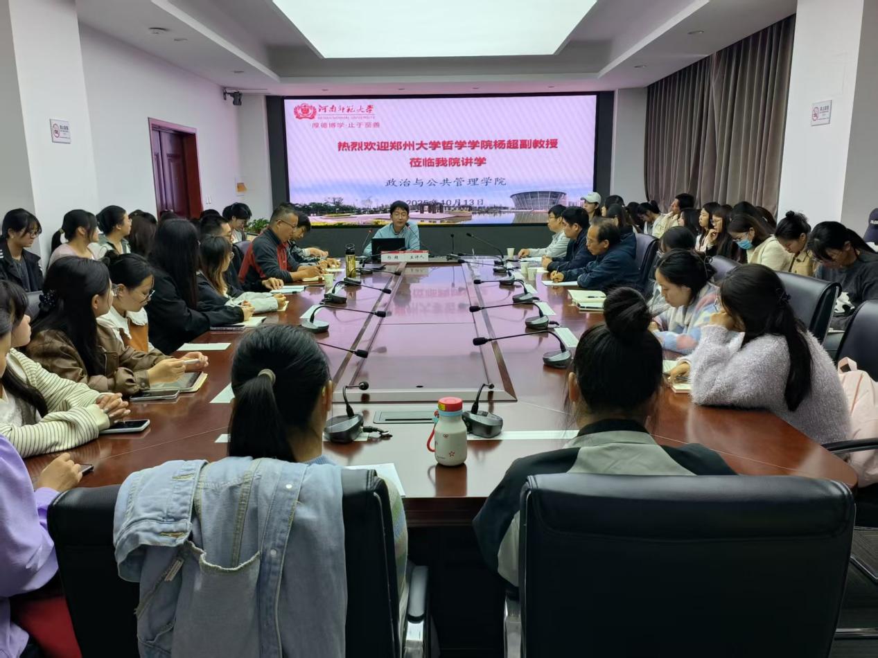 10月13日上午,应政治与公共管理学院邀请,郑州大学哲学学院杨超副教授在517会议室为学院师生作了题为《礼治文明的重塑:汉革秦制外礼内理的治理逻辑转向》的学术讲座。学院相关专业教师、研究生和本科生参与。讲座由学院张昊雷博士主持,张树业教授担任评议人。