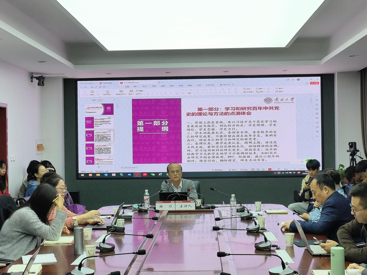 围绕讲座主题,徐行首先从学习和研究百年中共党史理论与方法的点滴体会入手,强调在思想上要高度重视党史学习,运用新科技研究和讲授党史,同时也要走出小课堂,积极开展学术交流,努力挖掘新史料。其次,他以周恩来为例,系统介绍了周恩来的政治生涯以及周恩来对中国共产党的发展、新中国的政治、经济等多方面的贡献。最后,他从习近平总书记号召我们学习周恩来的崇高精神风范出发,阐述了周恩来崇高精神风范的丰富内涵,倡导新时代我们要继续传承周恩来的崇高精神风范,学好党史、用好党史,从党的历史中汲取智慧和力量。