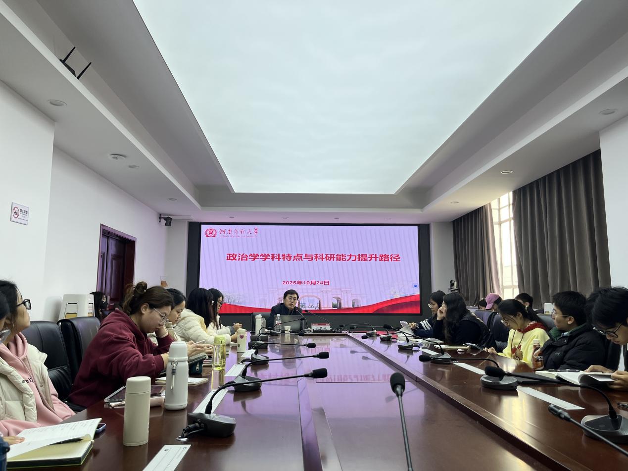 为切实提高我院研究生的科研素养与学术规范意识,增强科研创新能力,学院以分学科开展入学教育为契机,于10月24日上午,特邀艾昆鹏教授举办《政治学学科特点与科研能力提升路径》专题讲座。研究生专职辅导员张凤娟、2025级政治学专业和国际事务专业研究生参加了此次讲座。