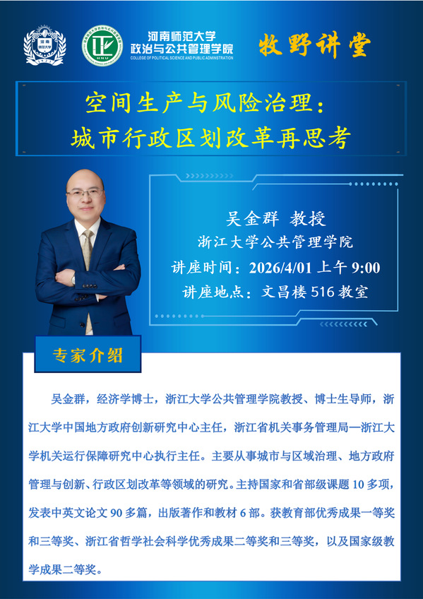 牧野讲堂讲座预告:空间生产与风险治理:城市行政区划改革再思考
