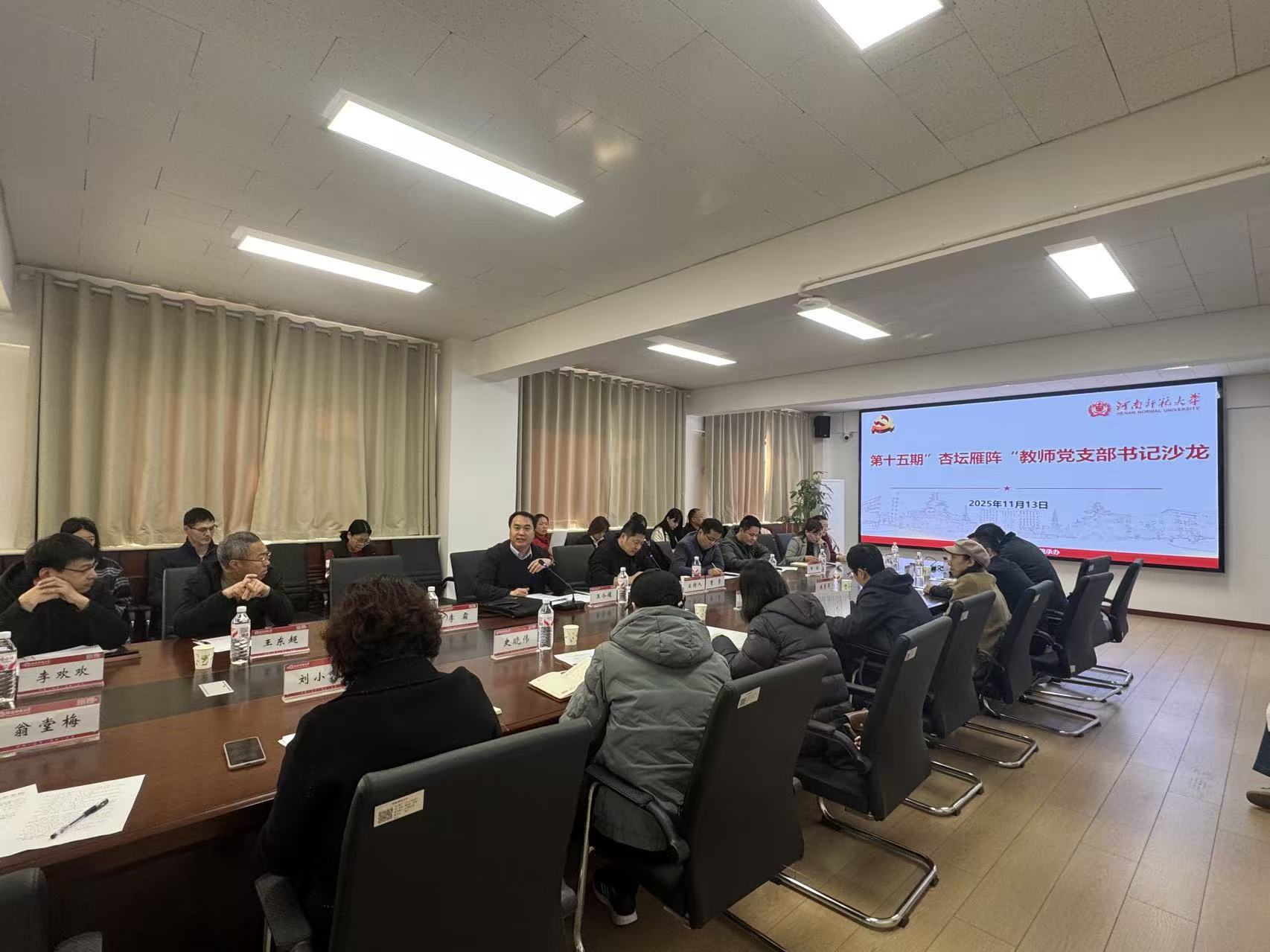 11月13日上午,由党委组织部主办、外国语学院党委承办的河南师范大学第十五期“杏坛雁阵”教师党支部书记沙龙在外国语学院二楼会议室顺利举行。校党委组织部,外国语学院党委有关负责人,全国、全省高校“双带头人”教师党支部书记“强国行”专项行动团队负责人,全省、学校“双带头人”教师党支部书记工作室负责人,各学院党支部书记代表等参加了此次活动。活动由外国语学院党委副书记曹崇主持。