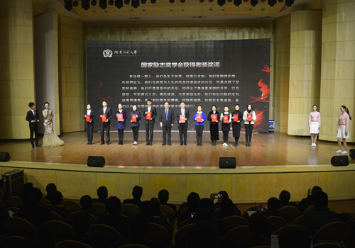 信念,坚如磐石;求知,永无止境。从先进学生视频展示中,我们深刻理解谢书记“励志、乐学、明德、笃行”八字寄语,品学兼优,勤奋刻苦,厚德博学,止于至善,他们高悬理想之帆、树立担当之志、汇聚青春之力、践行奋斗之路,争做有理想有本领有担当的新时代青年。校工会主席岳杰勇为荣获国家奖学金,国家励志奖学金,三好学生标兵,三好学生奖项的同学颁奖,校纪委书记张尚字为社会工作积极分子,文明学生等奖项的获得者颁发证书。