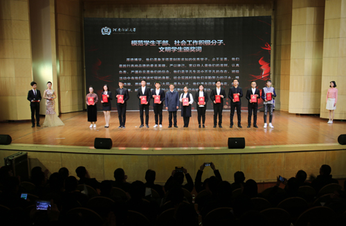 自2016年1月至2017年8月,我校共评选出三好学生标兵1117人、三好学生3229人、模范学生干部1259人、社会工作积极分子347人。本次颁奖典礼还表彰了5个优秀思政品牌工作、8个学生工作先进单位、7名优秀辅导员代表、44个先进班集体。学生工作系统将继续发挥榜样师大的作用,聚焦学生工作质量提升和内涵建设,全面提高学生工作科学化、专业化、精细化水平,为服务学生全面成长成才、深入贯彻落实党的十九大会议精神贡献力量。