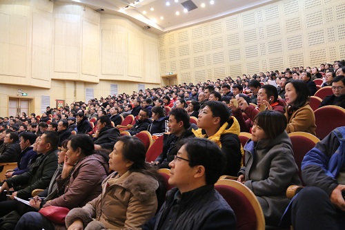 1月10日下午,河南师范大学2017年度国家基金总结表彰暨2018年度申报动员会在帕瓦罗蒂音乐厅召开。校党委书记赵国祥、校长常俊标出席会议并讲话。校党委副书记臧振春,副校长李雪山、马治军,纪委书记张尚字,工会主席岳杰勇出席会议。各学院副处级以上领导、科研秘书、学科带头人、科研平台负责人、2018年度国家基金申请人及学校相关职能部门副处级以上领导等近500人参加了会议。会议由校党委副书记、副校长陈广文主持。