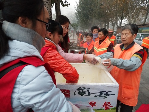 在本次的“温暖冬天”爱心帮扶活动中,各学院整合学生会志愿服务部及志愿服务类社团,深入各类志愿服务基地开展“‘团’助成才”融入社会行动。其中,商学院尊师敬老小组深入天太敬老院为老人带去温暖;政治与公共管理学院志愿服务部组织青年志愿者前往太阳村孤儿院,关爱孤童,奉献爱心;社会工作协会的志愿者及榴心社工的工作人员赴新乡市免费早餐发放点为牧野区的环卫工人送上了爱心早餐……志愿者们将温暖带出校园,带向社会,为需要的人们奉献了无限的爱与希望。