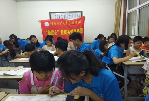 7月12日上午,新联学院“新联心”教育关爱服务团学生会志愿团一行25人在新乡市西闫屯村小学开展了留守儿童教育关爱活动。