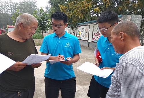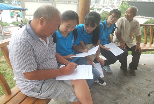 志愿者们针对农村环境现状、环境保护意识、防污治理措施、水资源保护方法等方面制作了调查问卷,在村委会、街道、村民家中进行问卷调查。村民们积极配合、认真填写,并向志愿者询问调查问卷题目和选项含义,志愿者们耐心解答,并向村民们讲解环境保护的重要性,呼吁村民们要爱护村庄、保护环境。