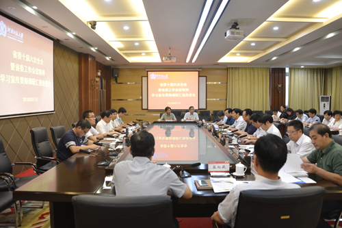 校党委书记赵国祥汇报了学校学习宣传贯彻省委十届六次全会暨省委工作会议精神的情况。赵国祥指出,学校党委高度重视学习宣传贯彻会议精神,制订学习计划,组织专题研讨,通过做好示范学、抓好跟进学、深入研讨学、广泛参与学等环节,力求学深学透,融会贯通,确保省委决策部署在河南师范大学落地生根、开花结果。赵国祥从突出“五个强化”、有效形成党的建设高质量合力,凝聚“五个出彩”、以党的建设高质量推进学校事业发展高质量等方面介绍了当前学校工作中的亮点和出彩点。赵国祥表示,学校将把省委十届六次全会暨省委工作会议精神融入学校各项改革之中,落实在学校工作之中,以党建为引领,实施顶天、立地、国际化“三轮驱动”,实现以党的建设高质量促进学校事业发展高质量,为中原更加出彩做出贡献。