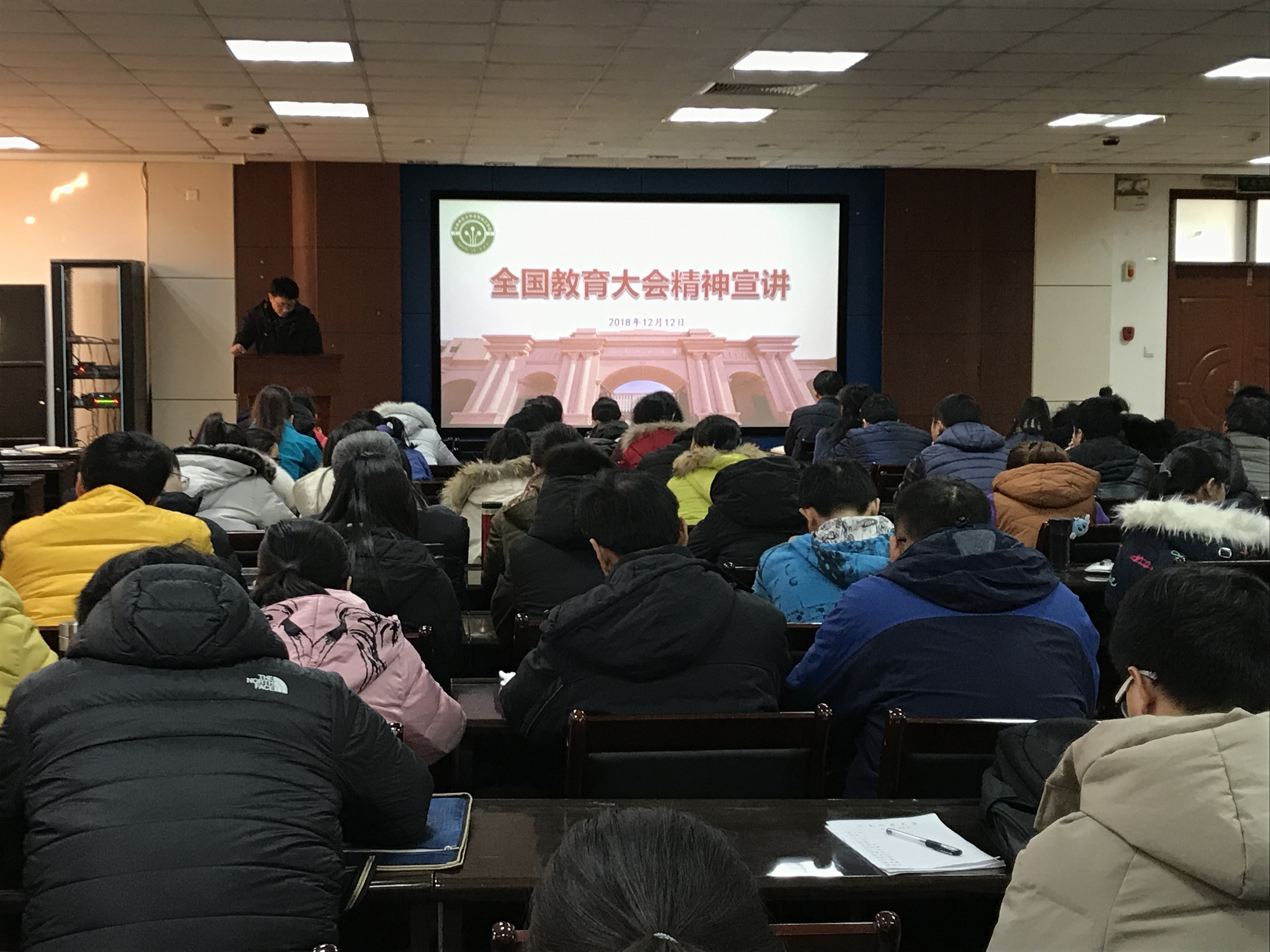 为深入学习贯彻习近平总书记重要讲话和全国教育大会精神,提高思想认识,12月4日下午,外国语学院在学术报告厅举办全国教育大会精神宣讲会。学院师生代表参听取了宣讲。