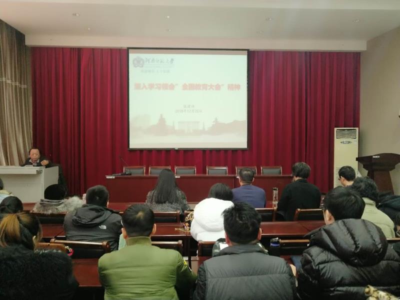 12月5日下午,数学与信息科学学院在学院503教室举行全国教育大会精神宣讲会。学院党委书记刘文安担任主讲。学院领导班子成员和全体教职工参加宣讲会。