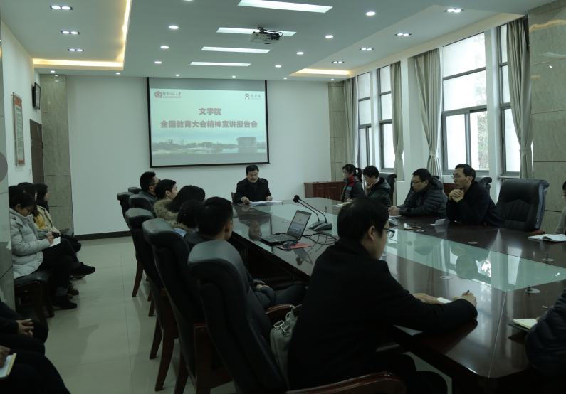 为了深入学习全国教育大会精神,全面落实立德树人根本任务,按照学校工作部署,文学院党委书记王俊杰和院长李永贤组织召开学生代表和教师代表宣讲会,认真传达落实会议精神。