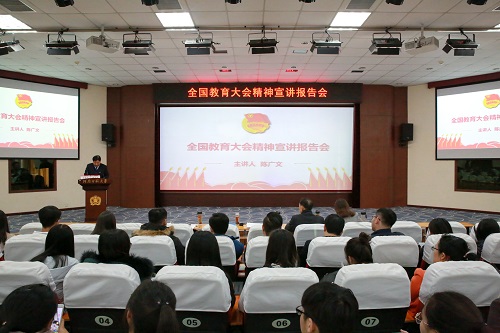 陈广文围绕“学习全国教育大会精神,争做德智体美劳全面发展的社会主义建设者和接班人”这一主题,为全体学员进行宣讲。他强调,深入学习领会习近平总书记关于教育的重要论述,深刻理解习近平总书记在大会讲话中概括的“九个坚持”,是对我国教育事业规律性的认识,为做好新时代教育工作提供了根本遵循。最重要的是深入学习领会、全面准确把握习近平总书记关于教育的重要论述的科学内涵和精神实质,更好地武装头脑、指导实践、推动工作。