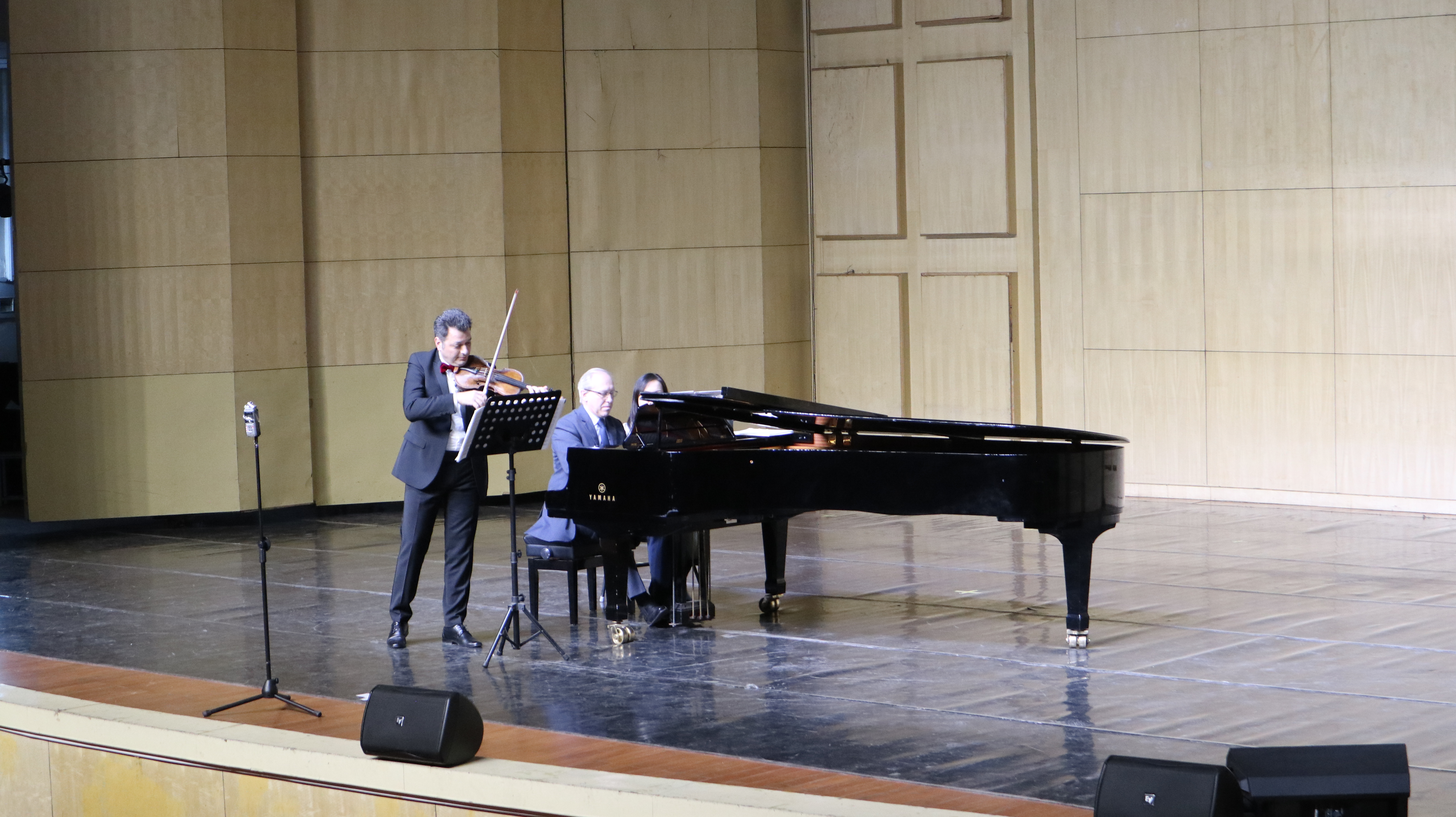 李学志和我校400余名师生一起在音乐厅观看了捷恩金等举办的音乐会,对音乐会和大师班的成功举办表示祝贺。