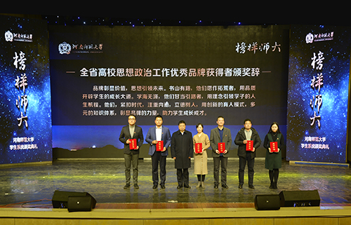 青春韶华养正气,俊逸学子树榜样;春风化雨润无声,思想引领育英才。群诵《榜样的力量》掷地有声,让我们深刻感受到师大学子德业并进,知行合一的浩然正气;《不忘初心,坚守使命》辅导员形象视频彰显着辅导员的初心和使命。校领导分别为国家奖学金获得者、国家励志奖学金获得者、三好学生标兵等先进个人获奖代表颁发荣誉证书,为省级先进班集体、省级文明班集体、省级文明宿舍等先进集体获奖代表颁发奖牌,为优秀辅导员、思想政治工作优秀品牌获得者颁发荣誉证书,为学生工作先进单位颁发奖牌。