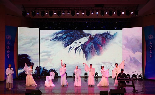 投身实践勇争先,迸发青春正能量。1月3日晚,我校在帕瓦罗蒂音乐厅举办2018年河南师范大学实践育人成果展示会。校党委副书记陈广文,校党委常委、副校长李学志出席会议。党委宣传部、党委学工部、党委研工部、就业创业指导服务中心、教务处、科技处、校团委、外国语学院、音乐舞蹈学院等相关单位负责人,各学院党委(党总支)副书记、团委书记及学生代表500余人参加会议。