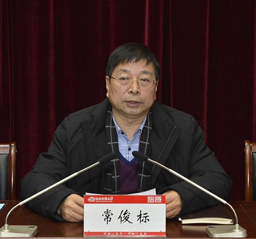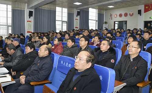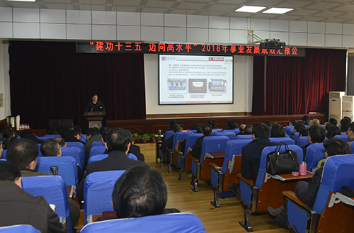 1月12日,“建功“十三五”,迈向高水平”2018年事业发展成效汇报会在党校教室召开。校党委书记赵国祥,校长常俊标,校党委副书记、工会主席臧振春,校党委副书记陈广文,党委常委、副校长李学志、李雪山、刘玉芳出席会议,全校副处级及以上干部参加会议。会议由赵国祥主持。