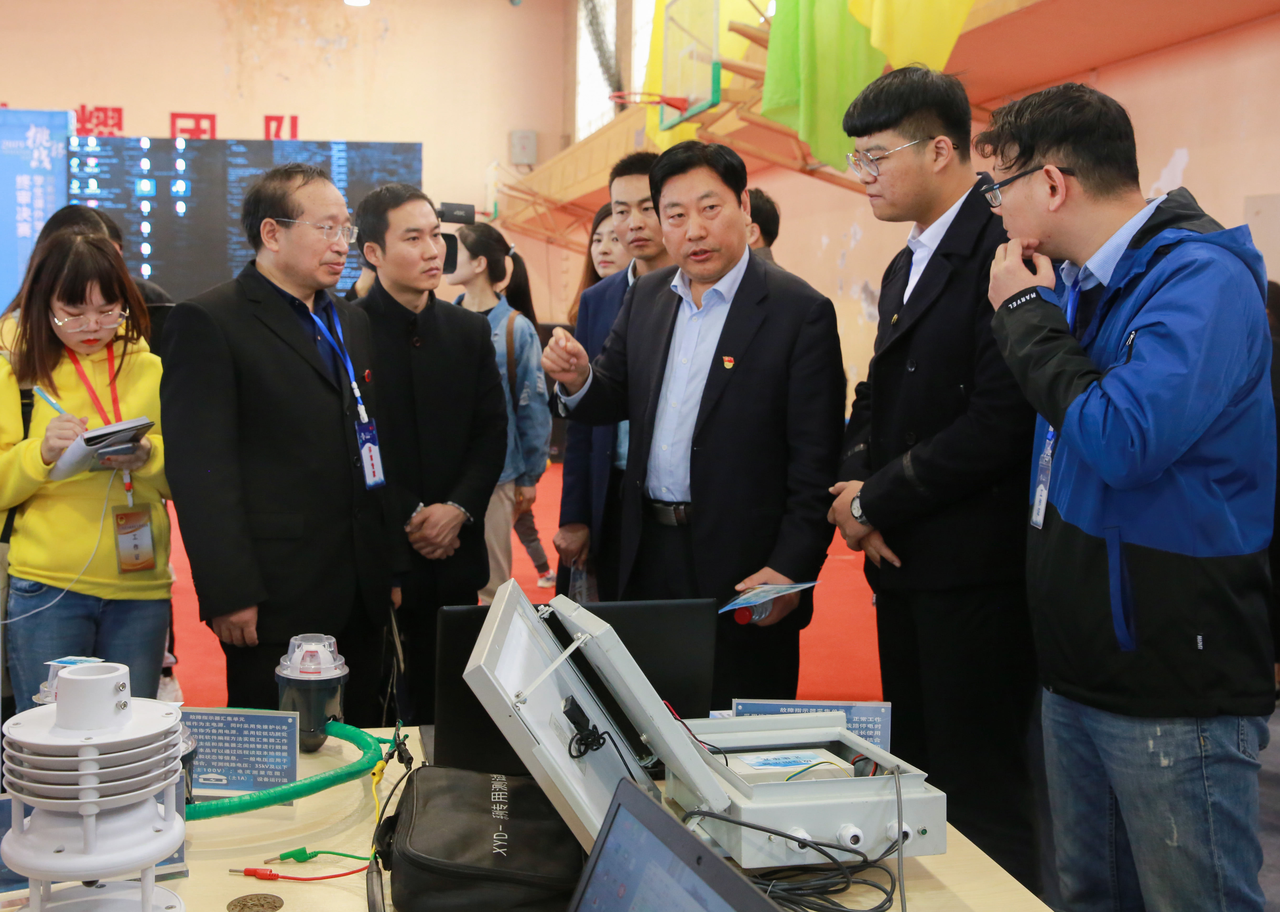 陈广文来到作品展示现场看望参赛师生,仔细了解作品情况,认真给予指导。在环境学院选送作品《一种可堆肥分类垃圾箱》展台前,陈广文对同学们将专业知识与创新创造实践结合起来表示肯定,他指出该作品非常具有社会意义,建议该研究项目与当今环境热点问题紧密衔接,在社会真相的还原中让调查研究更“接地气”,为环保事业做出积极贡献;在与电子与电气工程学院选送作品《适用于苛刻环境下检测区域电路的故障指示器》的项目组学生交流时,陈广文讲到,“电网智能化的今天,电力使用作为一项‘卡脖子’的关键技术,对于国家安全意义重大”,他鼓励参赛学生进一步拓展研究深度,提高作品的应用价值。