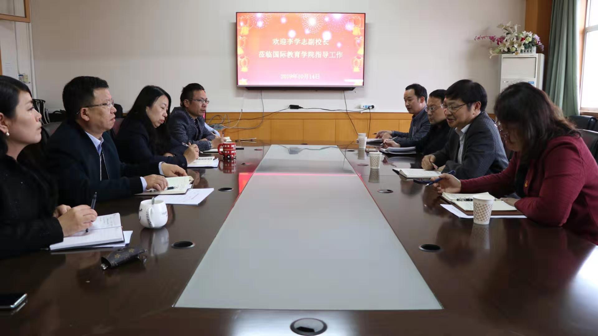 10月14日下午,李学志在国际合作与交流处赵扬处长陪同下,来到国际教育学院,就孔子学院建设、中外合作办学机构和项目申报、中外合作办学项目学生教学与管理等问题进行调研。国际教育学院班子全体成员,文学院和外国语学院相关人员参与调研。
