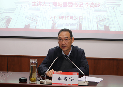 李高岭结合主题,回顾了大别山地区的革命斗争史,他指出大别山精神是中国共产党领导大别山人民在极其艰苦、极端严峻的形势下,不惜抛头颅、洒热血、赴国难,传播马克思主义,争取民族独立解放的英勇抗争中形成的,大别山精神的实质就是“坚守信念、胸怀全局、团结一心、勇当前锋”。他结合发生在商城县的重大历史事件和一个个鲜活的革命形象详细解读了大别山精神的思想内涵和时代意义。在报告最后,他强调要弘扬大别山精神,争做时代新人,就要坚定信念守初心,顾全大局担使命,对照先辈找差距,转变作风抓落实,以饱满的政治热情、良好的精神状态、扎实的工作作风,忠诚履职,积极作为,争先创优。