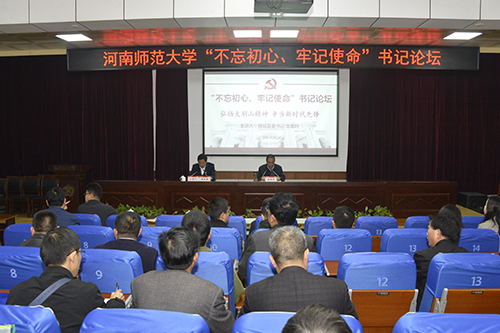 10月24日上午,我校2019年第七期“不忘初心、牢记使命”书记论坛暨专题报告会在党校教室举行。中共商城县委书记李高岭以《弘扬大别山精神,争当新时代先锋》为题作报告。省委第十二巡回指导组成员,各管理服务部门处级干部,各教学单位书记、副书记、组织员、团委书记,党支部书记代表等近300人参加了报告会。报告会由党委副书记、工会主席臧振春主持。
