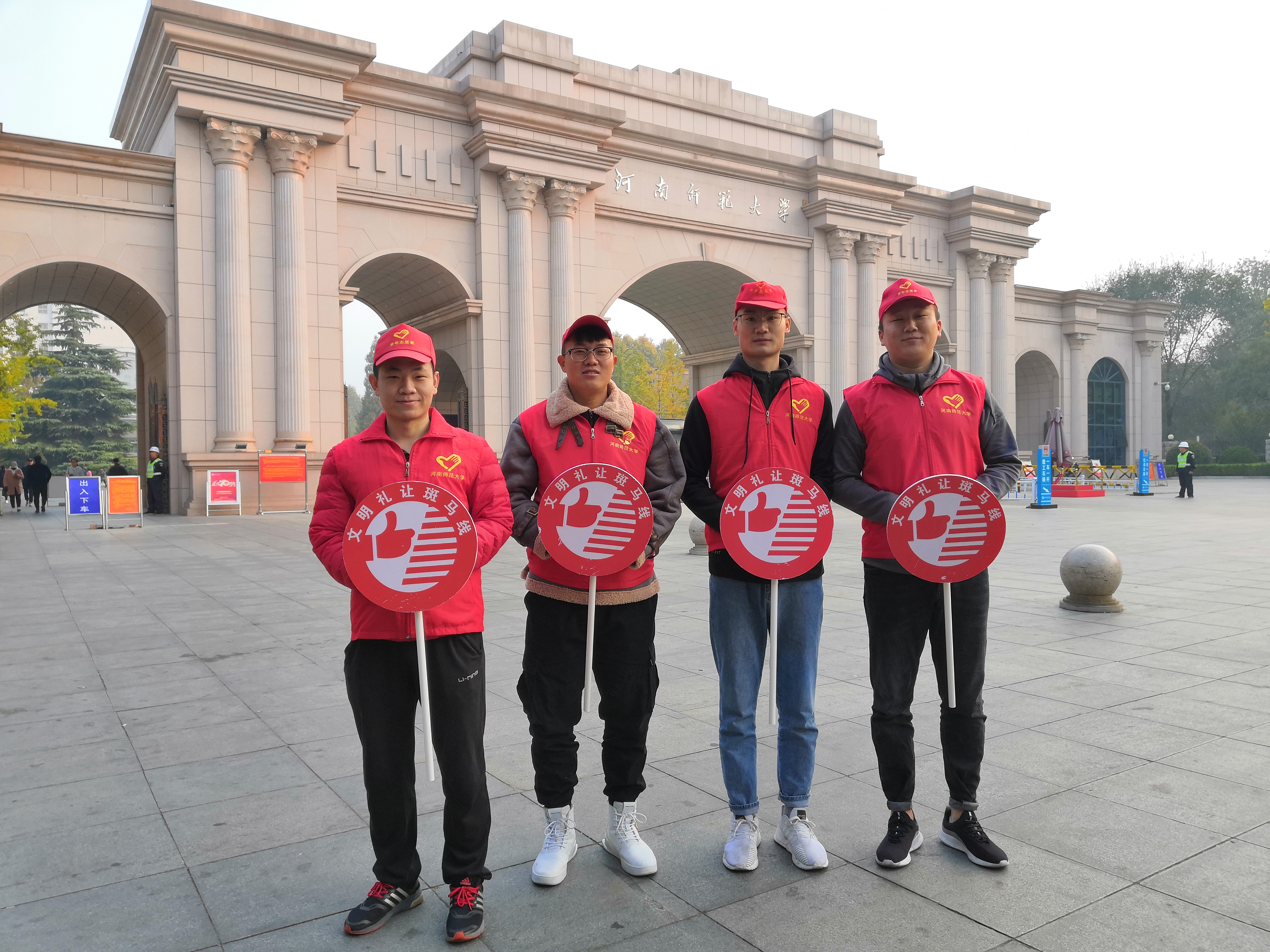 在早、中、晚高峰期执勤时间,志愿者们按时严格上岗,在建设路河南师范大学西校区南大门口斑马线东西两侧,认真履行劝导职责,积极引导人流规范有序出行,志愿者们身着志愿服,头戴小红帽,手持交通劝导牌,引导车辆礼让行人,引导行人快速通过斑马线,热心帮助老人、学生过马路,礼貌劝阻、交通纠正行人和非机动车驾驶人的不文明交通违法行为。