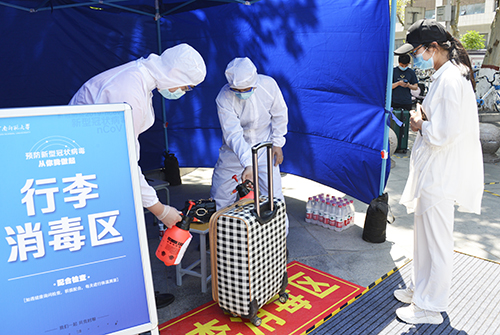当天上午,校领导一行先后来到行李消毒区、体温测量区、身份核验区和学院报到区视察指导工作,就返校报道过程中的重点环节、风险点和防控点提出了指导意见。在学生报到区,校疫情防控指挥部指挥长赵国祥、常俊标热情欢迎同学们“回家”,亲切询问报到学生从哪里返校,如何返校,返校路途如何注意个人防护等情况,并叮嘱同学们返校后严格遵守学校疫情防控的各项规定,在做好自身防护的前提下,安心投入学习和研究工作,不辜负领导、老师的殷切期望。赵国祥、常俊标详细了解各项工作流程,对坚守在岗位的工作人员表示慰问,要求各部门要严格落实返学复学各项工作要求,扎实做好防控细节,筑牢校园安全防线,确保学生返校报到安全有序。