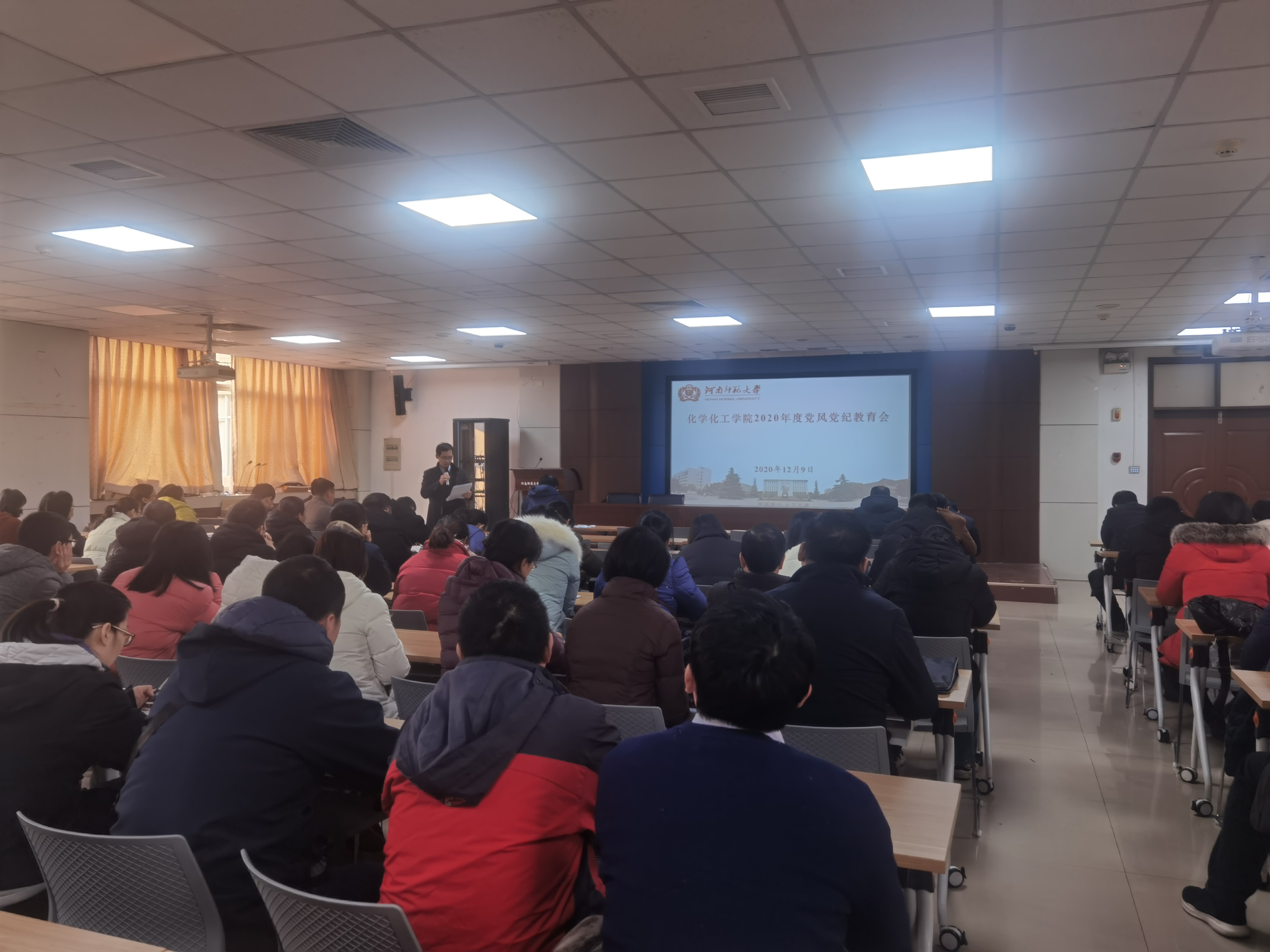 为深入推进学院党风廉政建设,根据《河南师范大学2020年党风党纪教育月活动方案》要求,12月9日下午,化学化工学院在化学北楼五楼会议室举行党风党纪专题教育学习会议,学院党政领导班子成员、全体教职工参加了本次活动。