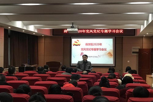 为深入推进党风廉政建设,扎实推进党风党纪教育月活动,根据《河南师范大学2020年党风党纪教育月活动方案》工作要求,12月8日下午,商学院召开党风党纪专题学习教育会议。学院领导班子成员以及全体教职工参加了会议。