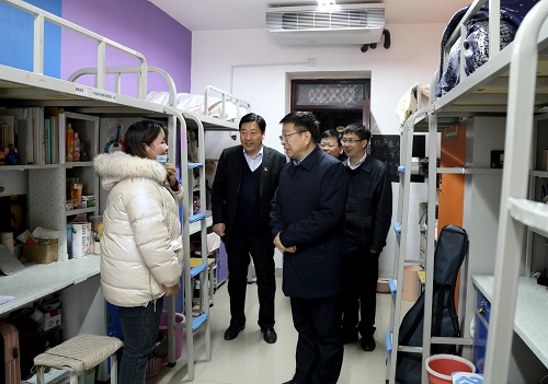 常俊标一行先后来到学院教学楼、图书馆、味轩餐厅、学生宿舍、校门值勤点,仔细询问校园疫情防控措施和有关开学服务保障落实情况,详细了解周边环境治理、学生返校报到、教学安排等工作进展,调研检查校园文化建设、校区规划、食品安全等工作。校领导亲切地向工作人员、志愿者、返校学子致以新春的问候和节日的祝福,并叮嘱大家不要放松警惕,做好常态化疫情防控工作。