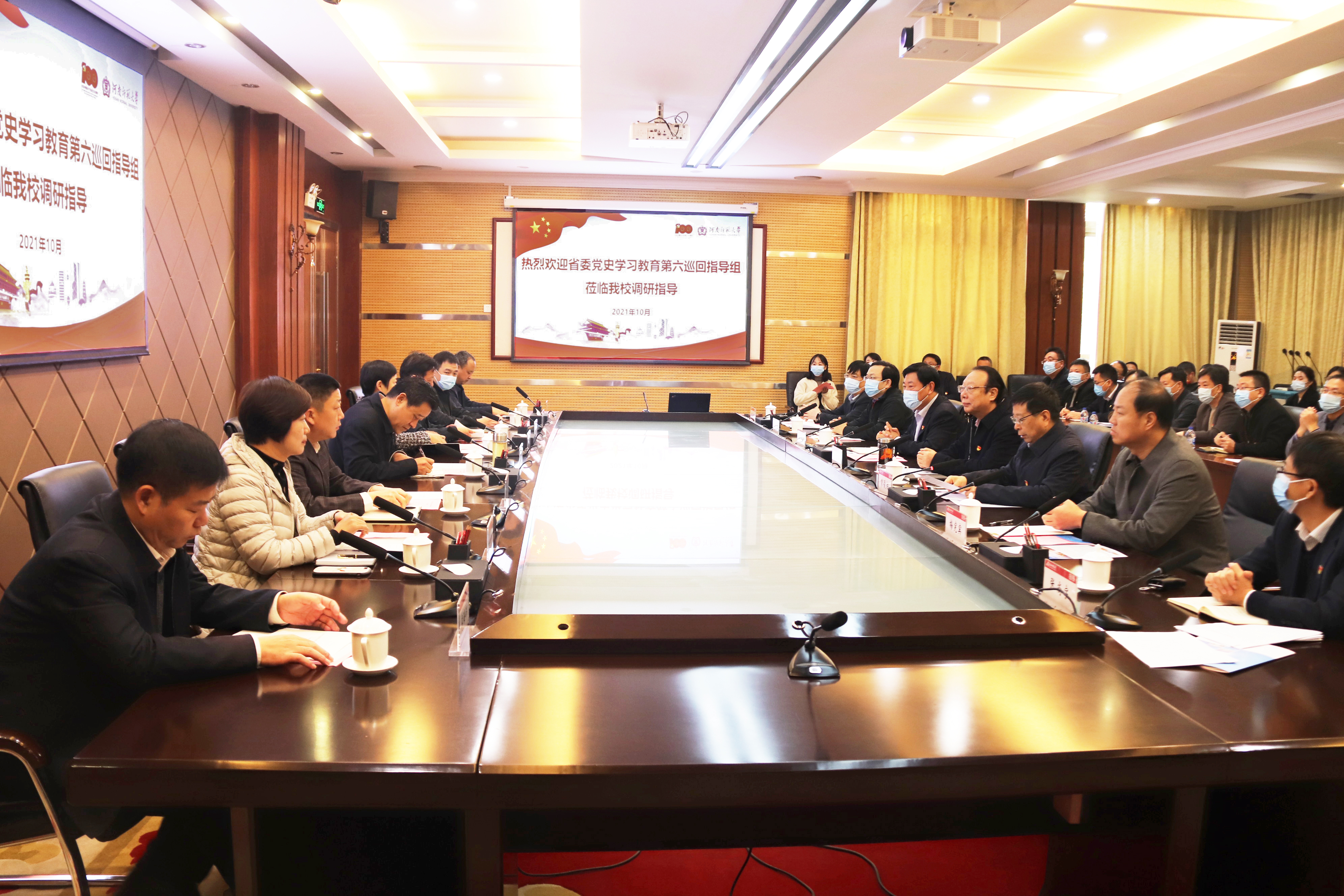 赵国祥对指导组一行的到来表示热烈欢迎,并以《深化党史学习教育 推动学校事业高质量发展》为题,从四个方面进行了工作汇报。一是“学”字当先,推动重要讲话入脑入心。把学习贯彻习近平新时代中国特色社会主义思想作为学校党史学习教育的重要内容,做好及时跟进学,抓好持续推进学,创新载体深入学,用好考核以促学,全面强化师生理论武装。二是“宣”字为要,推动宣传教育走实走深。认真做好“四史”宣传教育,坚持领导干部带头宣讲,组织力量广泛宣讲,因势利导开展契机教育,以赛促学激发师生活力,丰富学习形式,活化党史学习教育,让党史学习教育“接地气”“ 有人气”。三是“实”字为本,推动难题破解有力有序。学校把学习党史同推动工作结合起来,统筹谋划发展事、用心办好便民事、扎实解决困难事,把好事办实,把实事办好,不断增强师生的获得感、幸福感。四是“干”字为重,推动事业发展见行见效。学校通过党史学习教育助推事业发展,学科平台建设表现出色,人才培养质量稳步提升,科学研究成果不断增加,人才队伍建设扎实推进,干部培养工作卓有成效,对外交流合作深入拓展,各项工作不断取得新成效。