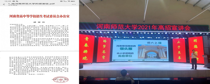 2012年以来,学校承担了贫困地区专项招生计划(国家专项计划)和农村专项计划(地方专项计划)近3500人。2016年以来,学校又积极承担地方公费师范生和“地方优师专项计划”公费师范生的1000多人的招生任务。彰显了我校作为省部共建综合性师范大学和河南省特色骨干大学的责任担当,为促进教育公平贡献了力量。