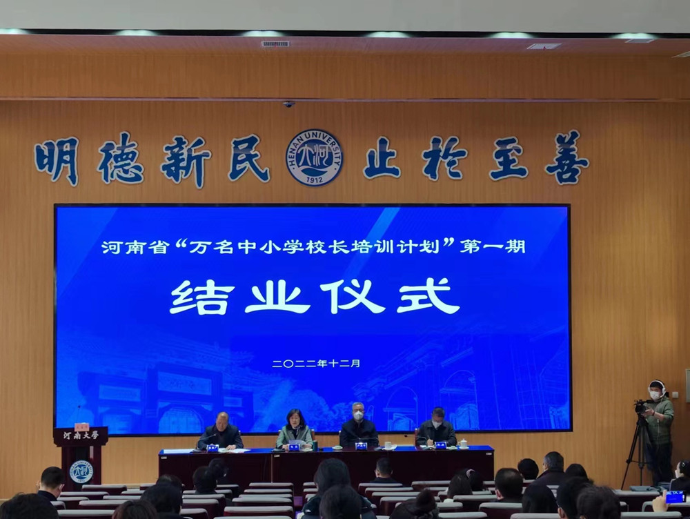 12月31日上午,河南省“万名中小学校长培训计划”第一期结业交流暨结业仪式以线上线下相结合方式举行。主会场分别设在河南大学郑州龙子湖校区友兰学堂104报告厅和河南师范大学勤政楼第四会议室。省教育厅党组书记、厅长毛杰,教育厅党组成员、副厅长张传广,教育厅二级巡视员杨光,河南大学党委书记卢克平,河南师范大学副校长马治军等在主会场出席活动。教育厅相关处室负责人,我校继续教育学院、教育学部负责人,第一期近1200名学员参加。活动由张传广主持。